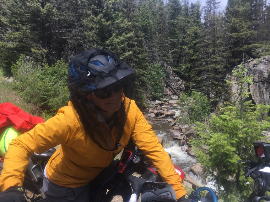 AND then, the “rough road”. It was definitely that, large rocks to try to either go over or around. And then washed out mud road… and definitely more exciting uphill… yeah. I remained positive, knowing it was only 2 miles of this junk. I walked and pushed my bike when needed, concentrating on building my upper body, rather than just the endless cardio workouts we’ve been doing. But then, the mosquitos came and that positive attitude, it just left me. I put my head bet on and my rain jacket and started run/chucking my bike uphill (talk about HIIT workout). The uphill ended, replaced with a nasty downhill. Ugh. Marty was awesome and walked my bike down and then ride his down (which was so impressive!). We did eventually make it out of the mountain and down into the street of Basin where we had a nice little lunch. We met a Scottish guy, Jim, doing the ride and who we met up with later as well.