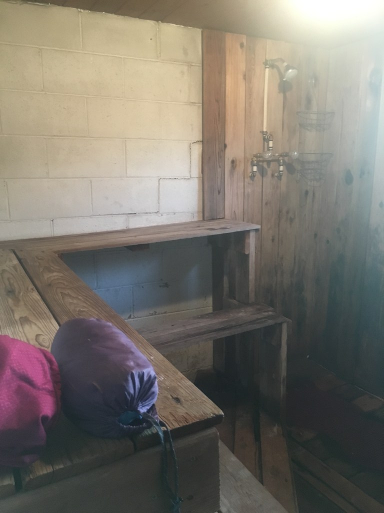 We finally made it into Wise River, where Marty downed a Starbucks iced mocha (no Starbucks here, just the canned stuff in the convenience store). We manage another half mile down the road and found the Wise River Club. Sat down for dinner and shortly after Steve walked in and then Scottish Jim! A reunion. Two more cyclists, one from San Diego and another from Vancouver, CA. It was a nice little group and we all ended up camping out behind the Club, only $20 for Marty and I including showers. The shower was so awesome, it included a sauna even π (picture below).We woke up to a few drops of rain and as we waited for the cafe to open, started chatting with the other cyclists. It’s interesting, we all have similar conversation… how much mileage to do while still being able to enjoy where we are. Although… at the moment…would just love to GET OUT OF MONTANA :)!