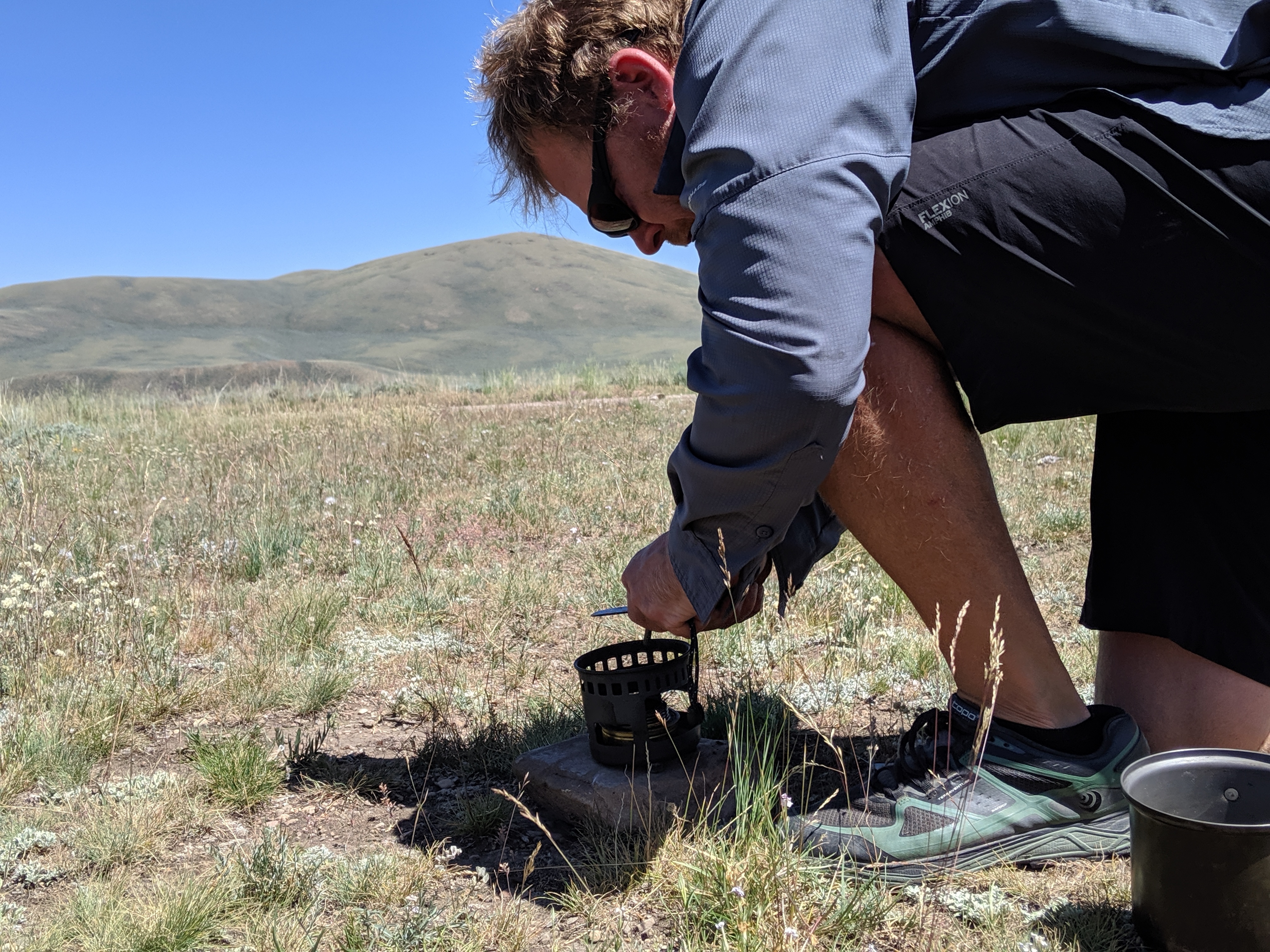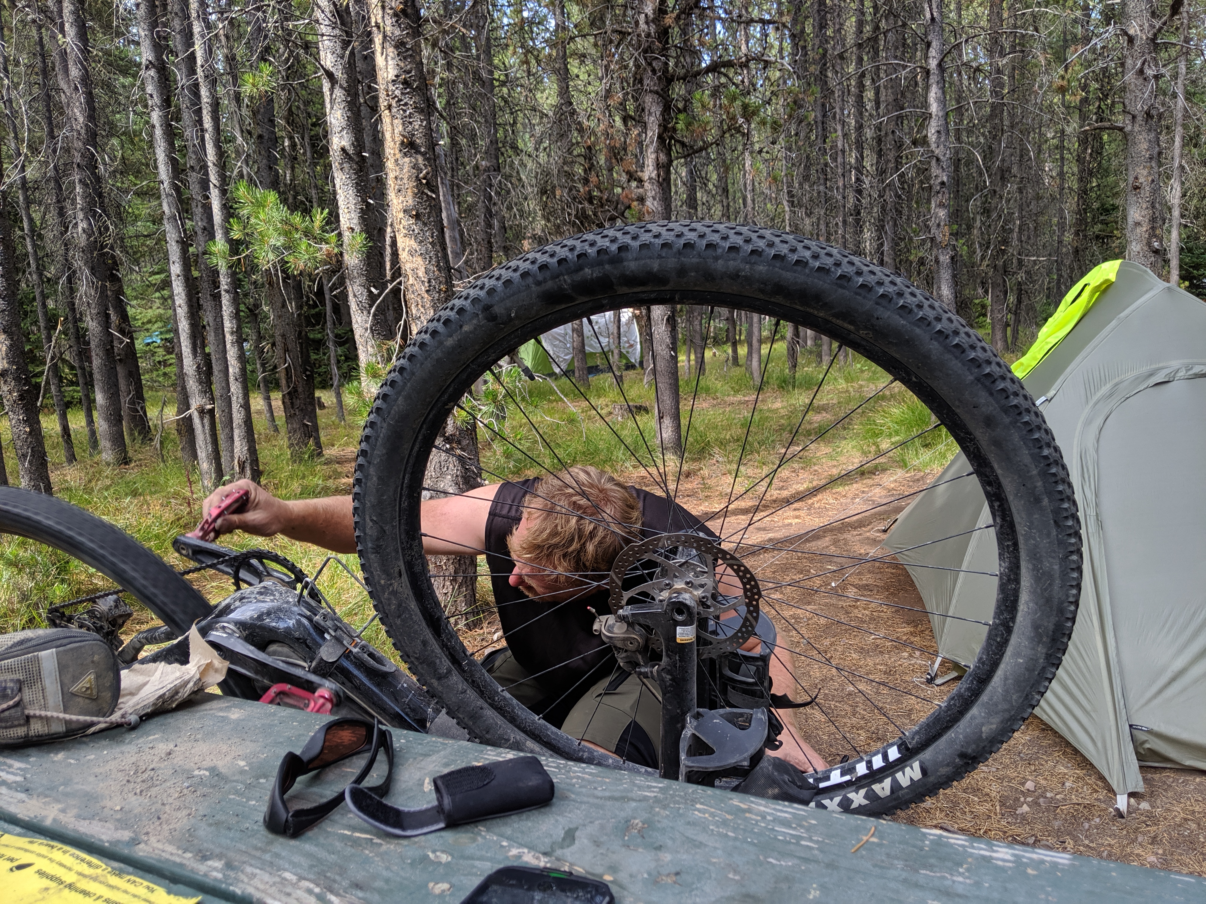 We ended up bandit camping in Sheffield campground about a mile down the road. Due to Marty’s Creek slip and wet socks… the smell that night in the tent was… pungent? We got up early and Marty noticed some fresh bear scat. Pretty sure his smelly feet kept the bears away :). We scadaddled early for the 17 miles to Colter Bay a.k.a. Mecca!!