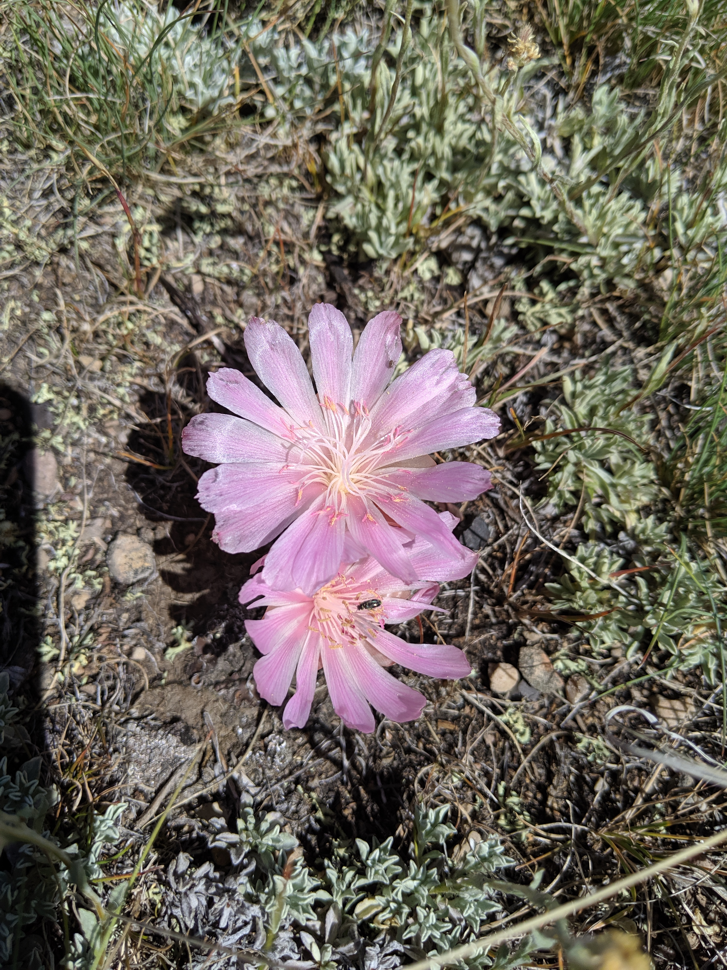 But part way through our dusty ride, a truck from Utah stopped in the road, guy got out and handed us cold bottles of water!! It was so pleasant and a nice little boost to keep on going. After another few miles we came upon a covered wagon ride. I tried to hitchhike but they were unamused…. oh well, can’t win them all :). We kept going uphill until I just gave out a bit and the sight of the next uphill was demoralizing. Marty saw and heard my anguish and had us stop. He filtered cold water from a stream where he accidently slipped a bit and soaked his foot. My hero :). We kept going. and still had to stop in the shade (luckily there was some), had some water, crackers, etc… And continued up.