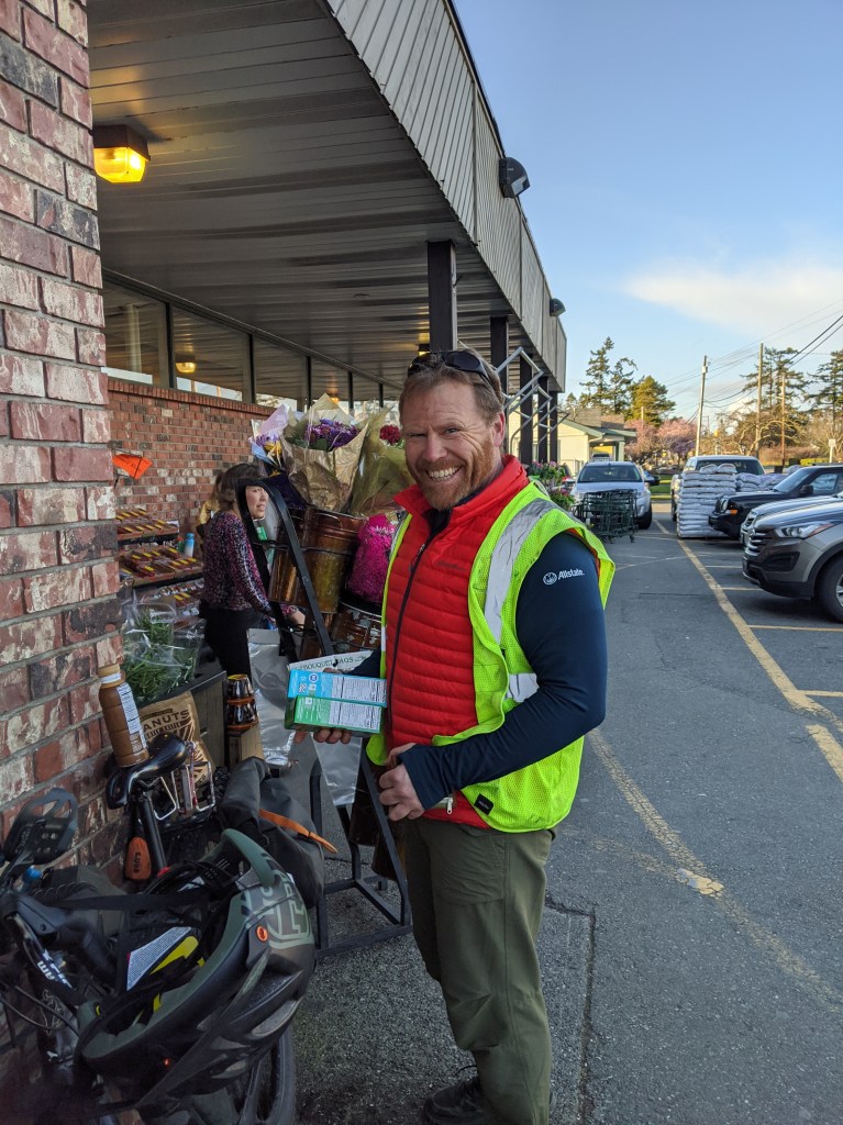 But we reunited and it felt so good! Fort Casey Historical State Park Campground right next to the Coupeville ferry terminal was our campground for the night. Marty brought his new Suburban aka “the burb”, and our new “camper” so we splurged $20 for the site rather than our normal hiker/biker price of $12. After picking a spot we hit the road. The wind was a bit chilly and I was so grateful to have borrowed Marty’s gloves (thanks babe!). With no real route in mind, we meandered down Ft. Casey road which was decently flat and had some nice farms and views. The road ended up near the Red Apple Grocery store where we split a chocolate milk and Marty succumbed to the Girl Scouts (Yes to thin mints!).