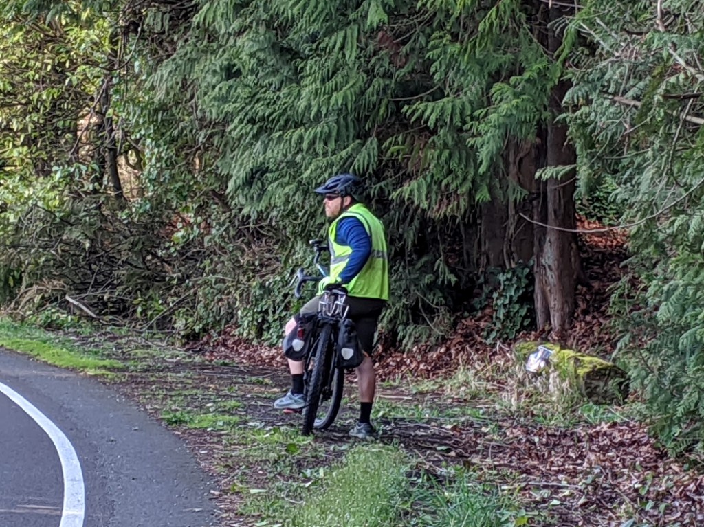 We reached Silverdale and made a right turn on Bucklin Hill (which for those who don’t know, is true to it’s name, and we were lucky to start it half way up). This started our trek back home and we hit Wheaton Way, a bigger 4-lane road which is usually heavily driven but has a nice wide shoulder. Nothing too exciting in my opinion. A few commercial buildings, blackberry bushes taking over the side of the road, a few not-so-well-maintained homes here and there. Although, always interesting to see what people like to collect in the front yard :).
