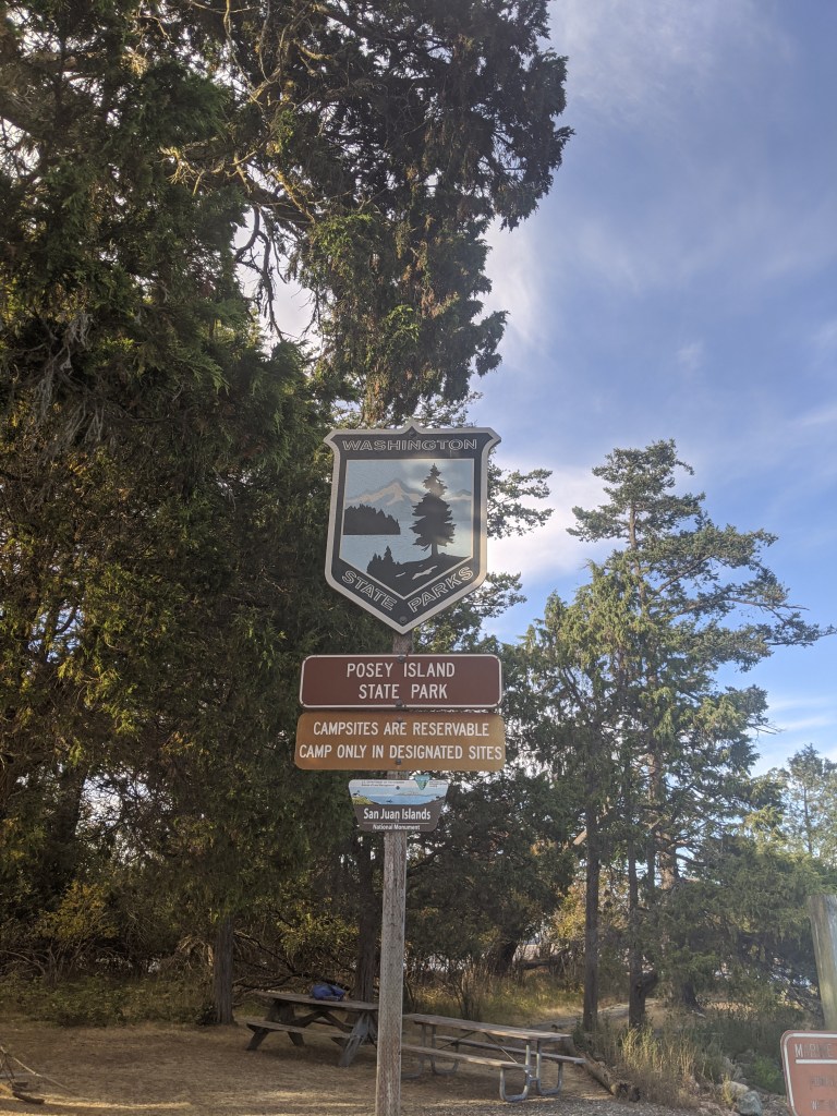 It took us about 25-30 minutes until we reached our little destination of Posey Island which had two cute little campsites and even a bathroom! Stocked with toilet paper and hand sanitizer even 🙂 win/win! We saw the reservation list posted, but found ourselves alone on “our” little island. We busted out our snacks and had a great little “dinner” on the picnic table and enjoyed the views. We regretted not bringing our camping gear, but next time for sure! It was decently quiet minus some pleasant music waffling from one of the houses on Pearl. After dinner, we took a stroll all the way around the perimeter. That took all of 10 slow, very slow walking and stopping minutes (it’s a tiny one!).